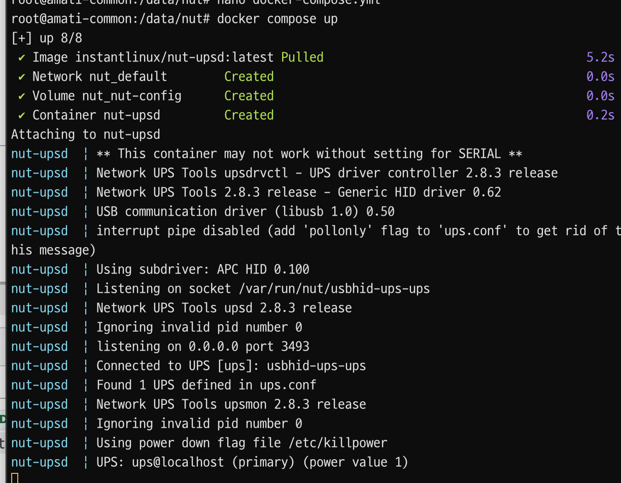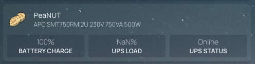 NUT는 Network UPS tools의 약자이며 ups 뿐만 아니라 PDU, 태양광 장치 등의 전력 기기의 모니터링을 위한 소프트웨어 모음입니다. 서드파티에서 관리하는 만큼 최신형 기기나 해당 ups가 네트워크 관련 특화로 별도 드라이버를 제공하지 않는 경우 NUT에서 모니터링이 어려운 경우도 있습니다. 여담으로 ups 상태를 모니터링하는 dashboard docker app으로 PeaNUT이 있습니다.